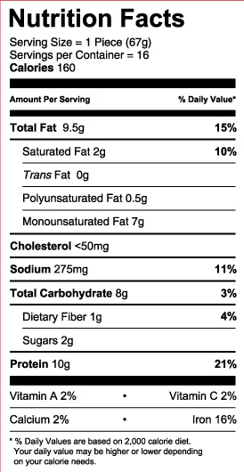 This is a ready-to-cook (uncooked) product; for safety, must be cooked to an internal temperature of 74°C (165°F) as measured by a meat thermometer.